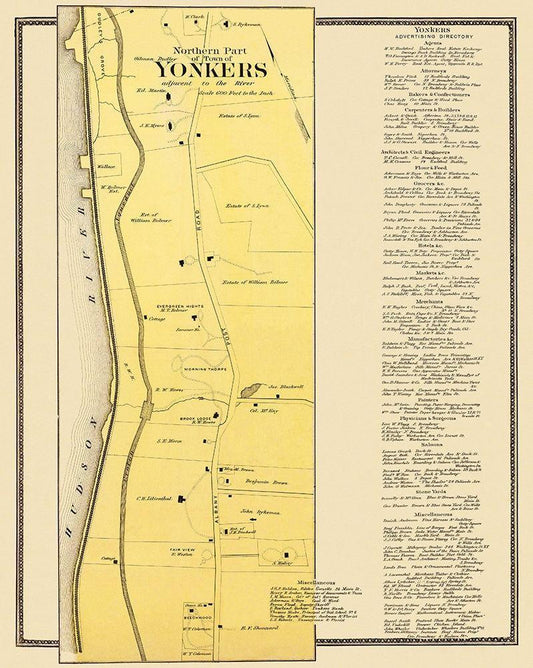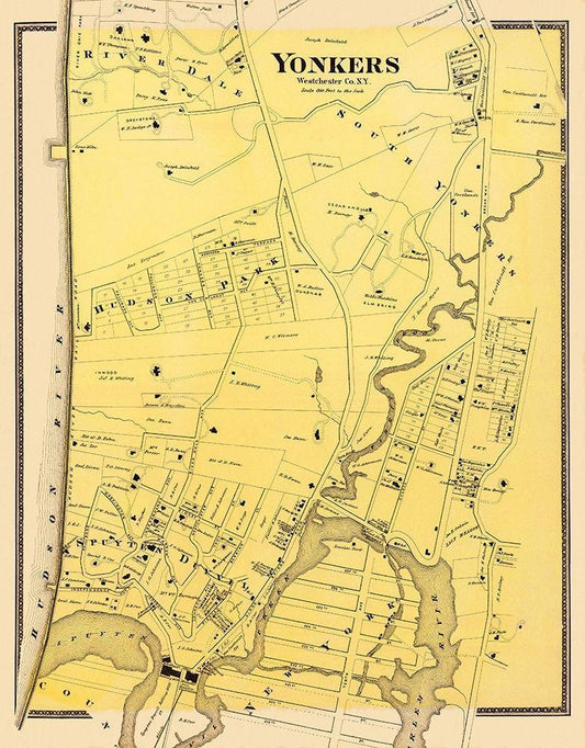 Yonkers, Southern New York Landowner - Beers 1868 White Modern Wood Framed Art Print with Double Matting by Beers