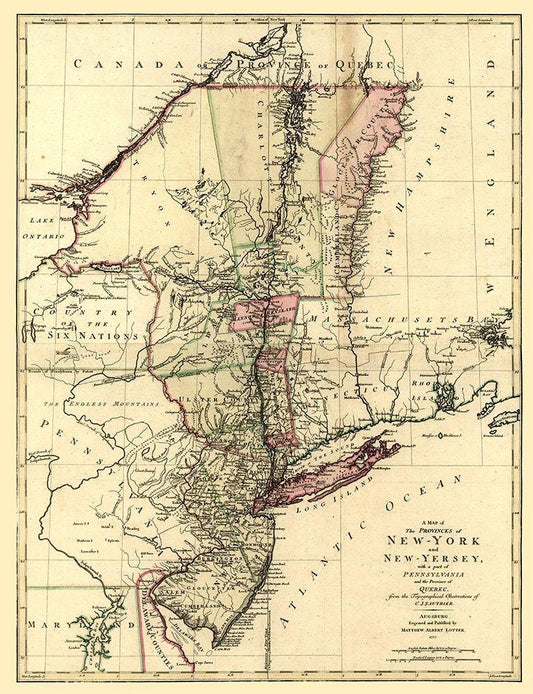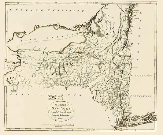 New York - 1796 White Modern Wood Framed Art Print with Double Matting by Moft