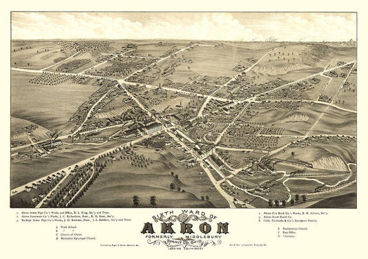 Akron Ohio - Stoner 1882 White Modern Wood Framed Art Print with Double Matting by Stoner