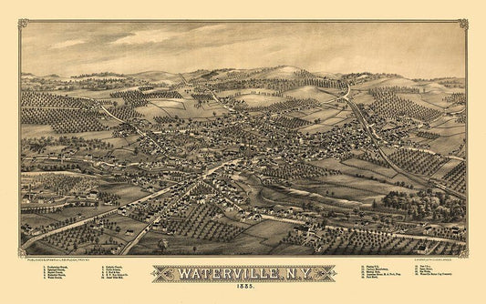 Waterville New York - Burleigh 1885 White Modern Wood Framed Art Print with Double Matting by Burleigh