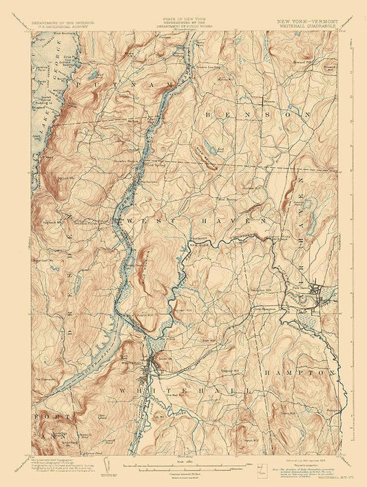 Whitehall New York Vermont Quad - USGS 1902 White Modern Wood Framed Art Print with Double Matting by USGS