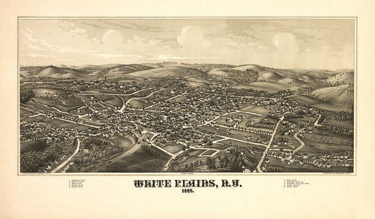 White Plains New York - Burleigh 1887 White Modern Wood Framed Art Print with Double Matting by Burleigh