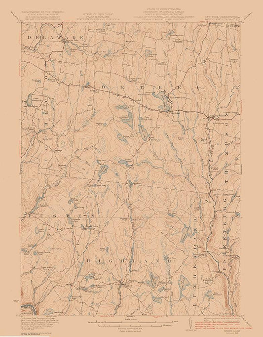 White Lake New York Quad - USGS 1922 White Modern Wood Framed Art Print with Double Matting by USGS