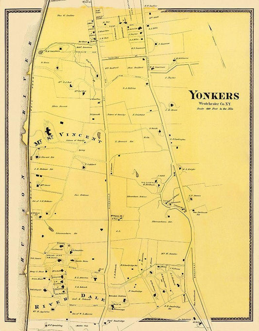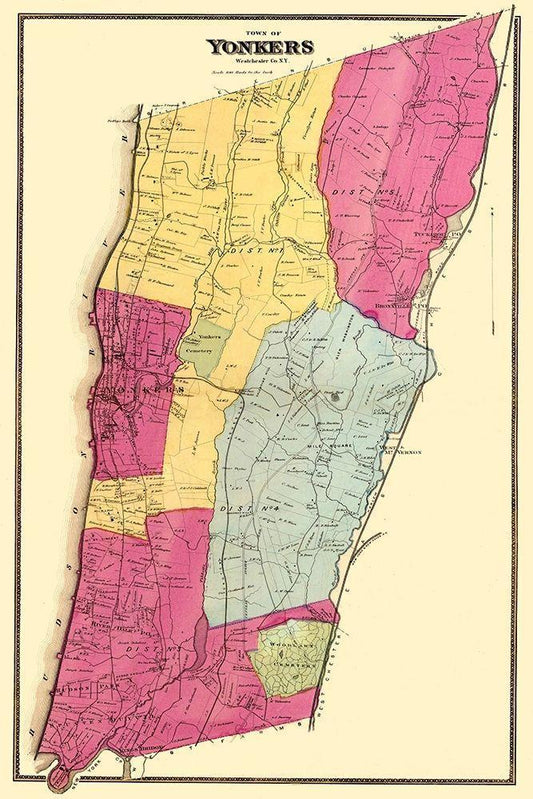 Yonkers, Central New York Landowner - Beers 1868 White Modern Wood Framed Art Print with Double Matting by Beers
