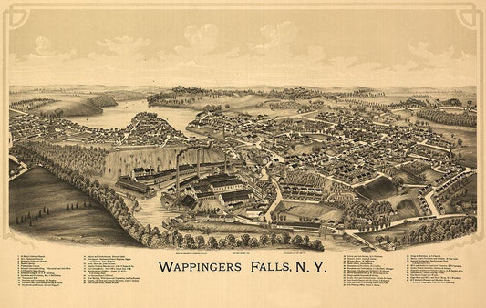 Wappingers Falls New York - Burleigh 1889 White Modern Wood Framed Art Print with Double Matting by Burleigh