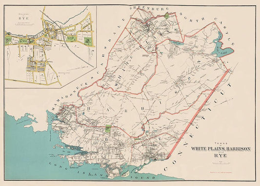 Westchester New York - Beers 1905 White Modern Wood Framed Art Print with Double Matting by Beers