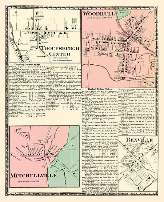 Troupsburgh, Woodhull, Mitchellville New York White Modern Wood Framed Art Print with Double Matting by Beers