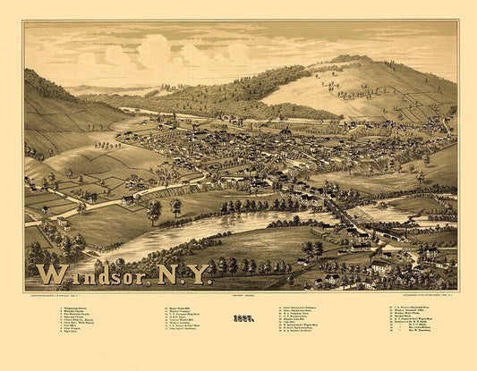 Windsor New York - Burleigh 1887 White Modern Wood Framed Art Print with Double Matting by Burleigh