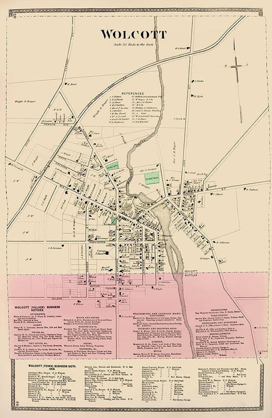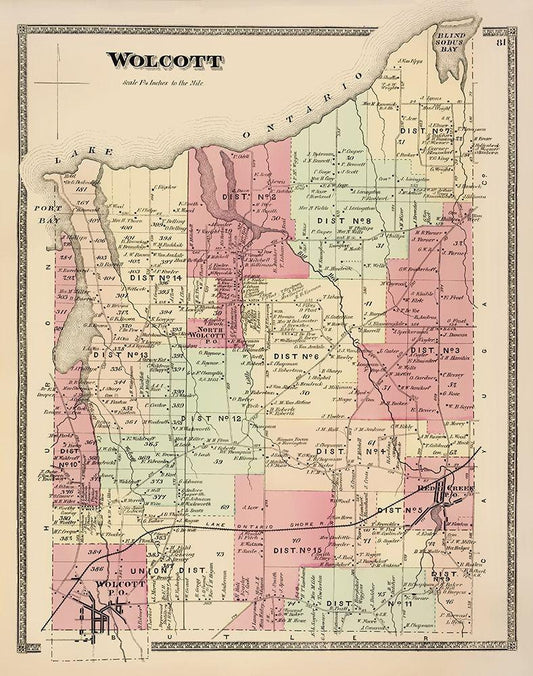Wolcott New York Landowner - Beers 1874 White Modern Wood Framed Art Print with Double Matting by Beers
