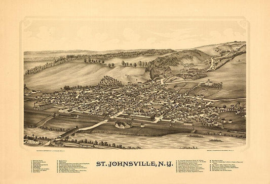 Saint Johnsonville New York - Burleigh 1890 White Modern Wood Framed Art Print with Double Matting by Burleigh