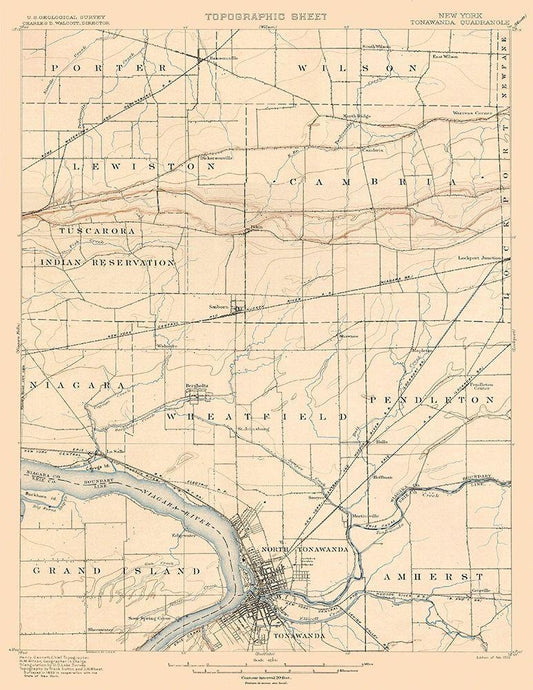 Tonawanda New York Quad - USGS 1900 White Modern Wood Framed Art Print with Double Matting by USGS