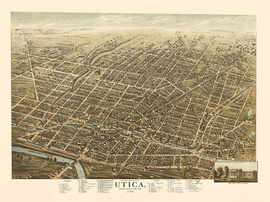 Utica New York - Brosius 1873 White Modern Wood Framed Art Print with Double Matting by Brosius