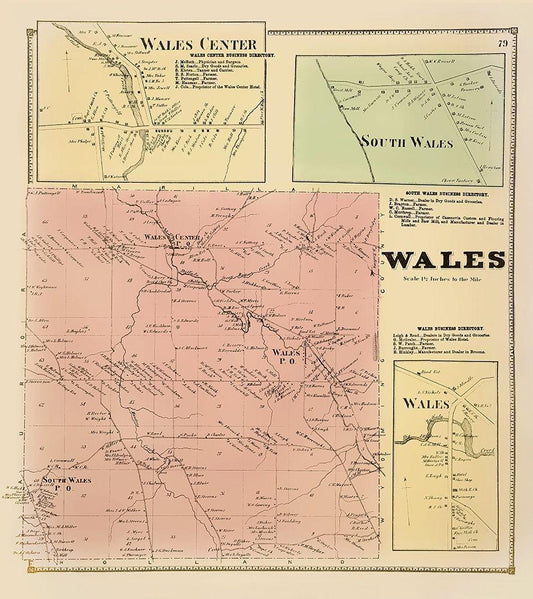 Wales New York Landowner - Stone 1866 White Modern Wood Framed Art Print with Double Matting by Stone