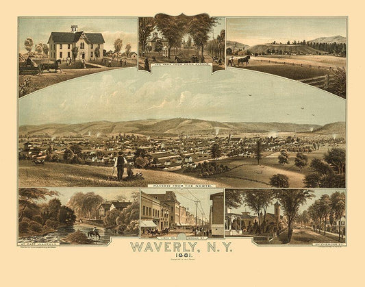Waverly New York - Moray 1881 White Modern Wood Framed Art Print with Double Matting by Moray