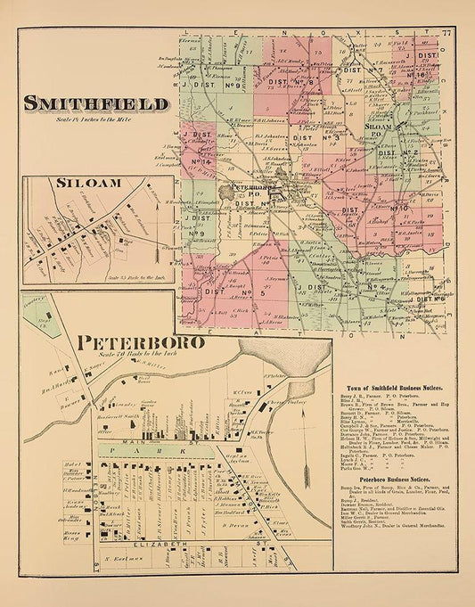Smithfield New York Landowner - Whitman 1875 White Modern Wood Framed Art Print with Double Matting by Whitman