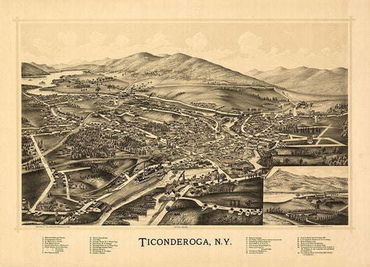 Ticonderoga New York - Burleigh 1891 White Modern Wood Framed Art Print with Double Matting by Adkins
