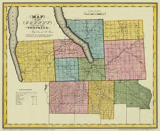 Tompkins New York - Burr 1829 White Modern Wood Framed Art Print with Double Matting by Burr