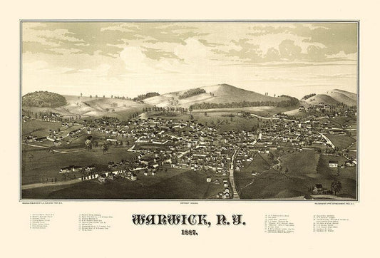 Warwick New York - Burleigh 1887 White Modern Wood Framed Art Print with Double Matting by Burleigh