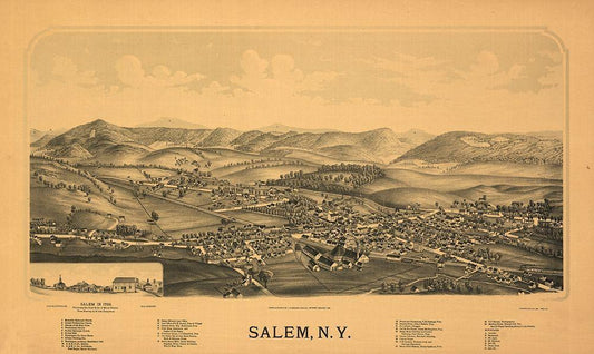 Salem New York - Burleigh 1889 White Modern Wood Framed Art Print with Double Matting by Burleigh