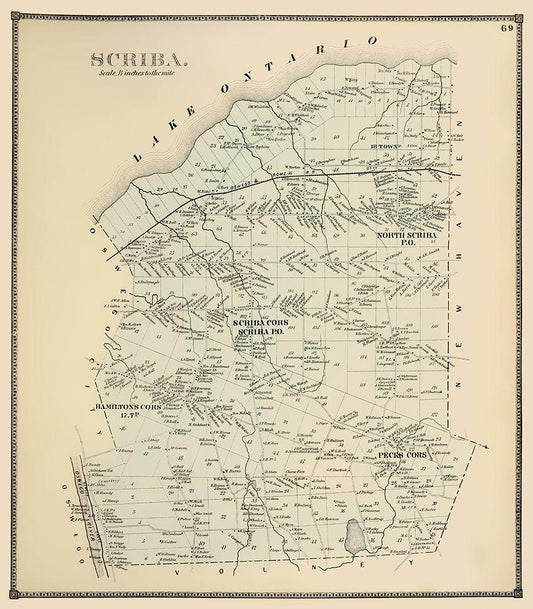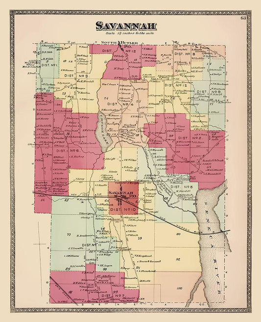Savannah City New York Landowner - Beers 1874 White Modern Wood Framed Art Print with Double Matting by Beers