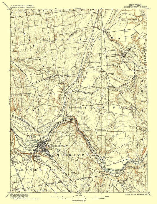 Schenectady New York Quad - USGS 1898 White Modern Wood Framed Art Print with Double Matting by USGS