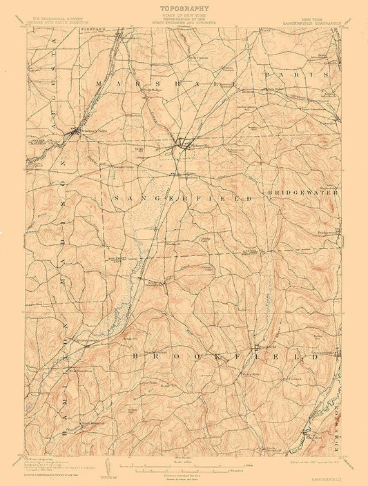Sangerfield New York Quad - USGS 1907 White Modern Wood Framed Art Print with Double Matting by USGS