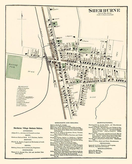 Sherburne New York - Burleigh 1887 White Modern Wood Framed Art Print with Double Matting by Burleigh