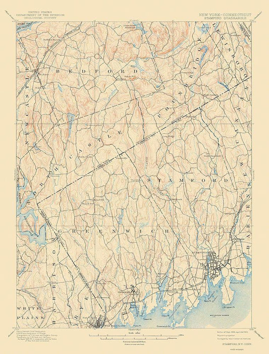 Stamford New York Connecticut Quad - USGS 1899 White Modern Wood Framed Art Print with Double Matting by USGS