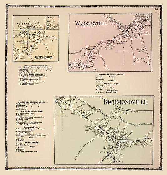Richmondville New York Landowner - Beers 1866 White Modern Wood Framed Art Print with Double Matting by Beers