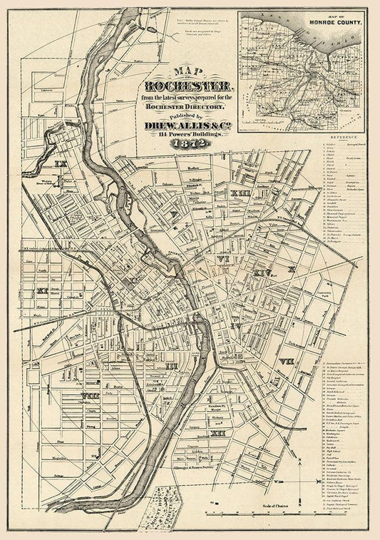 Rochester New York - Allis 1872 White Modern Wood Framed Art Print with Double Matting by Allis