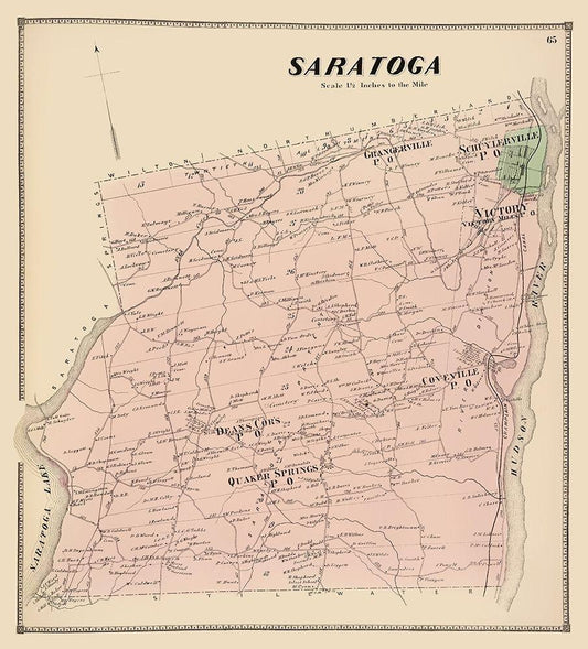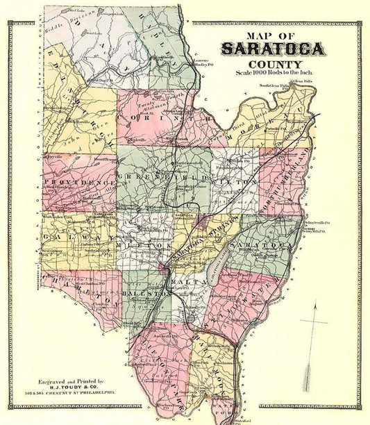 Saratoga New York Landowner - Stone 1866 White Modern Wood Framed Art Print with Double Matting by Stone