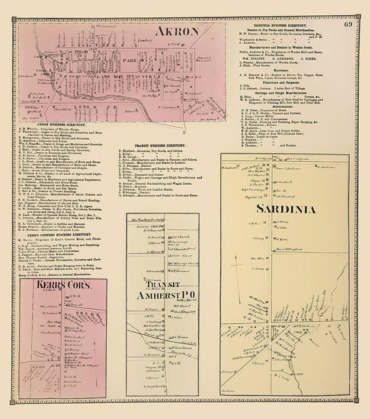 Akron, Kerrs, Transit, Sardinia New York White Modern Wood Framed Art Print with Double Matting by Stone