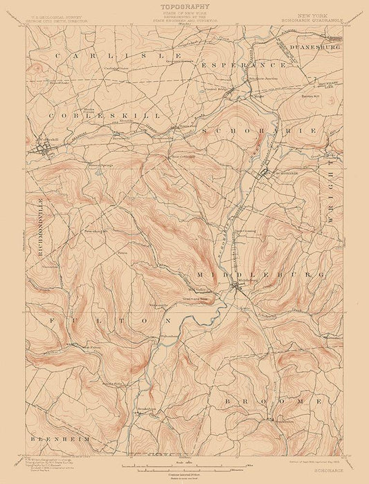 Shoharie New York Quad - USGS 1900 White Modern Wood Framed Art Print with Double Matting by USGS