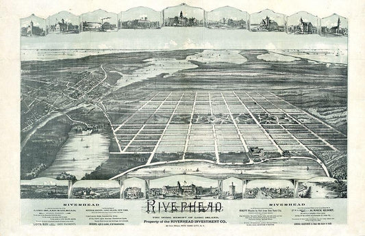 Riverhead New York -1890 White Modern Wood Framed Art Print with Double Matting by Unknown