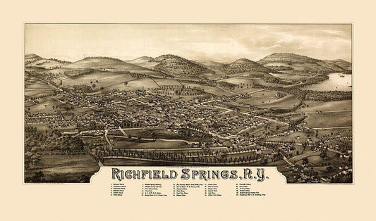 Richfield Springs New York - Burleigh 1885 White Modern Wood Framed Art Print with Double Matting by Burleigh