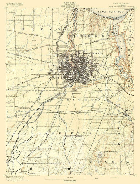 Rochester New York Sheet - USGS 1895 White Modern Wood Framed Art Print with Double Matting by USGS