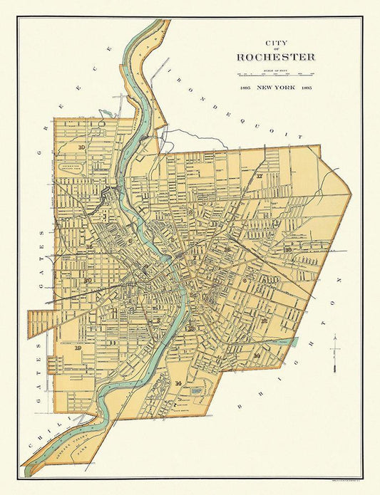 Rochester New York - Bien 1895 White Modern Wood Framed Art Print with Double Matting by Bien