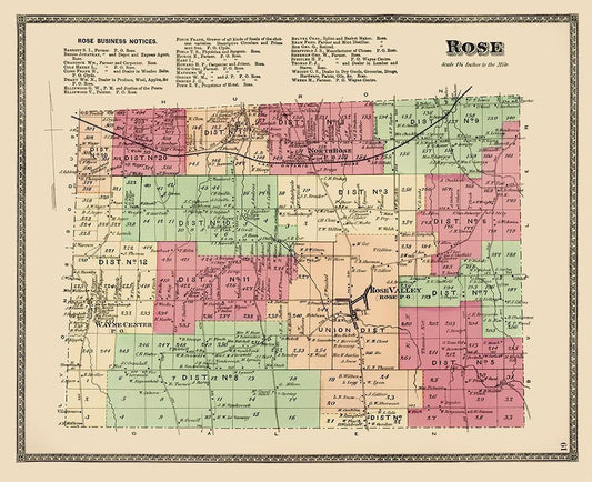 Rose New York Landowner - Beers 1874 White Modern Wood Framed Art Print with Double Matting by Beers
