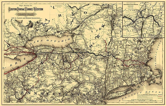 Boston, Hoosac Tunnel and Western Railway 1881 White Modern Wood Framed Art Print with Double Matting by Colton