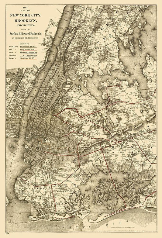 New York City, Brooklyn Elevated Railroad 1885 White Modern Wood Framed Art Print with Double Matting by Colton