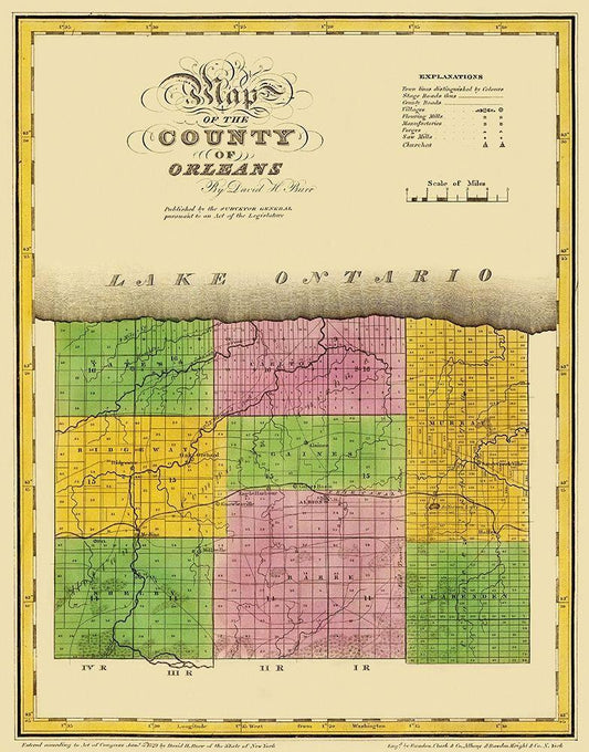 Orleans New York - Burr 1829 White Modern Wood Framed Art Print with Double Matting by Burr