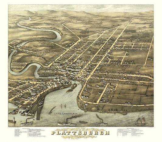 Plattsburgh New York - Stoner 1877 White Modern Wood Framed Art Print with Double Matting by Stoner