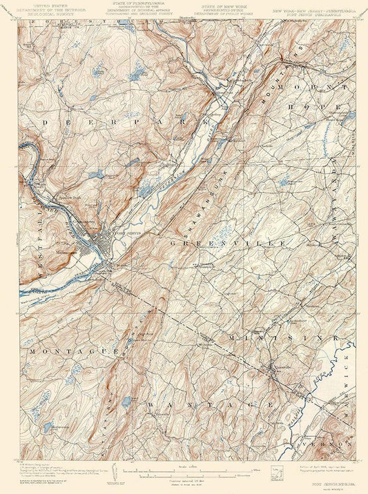 Port Jervis New York New Jersey Pennsylvania Quad White Modern Wood Framed Art Print with Double Matting by USGS