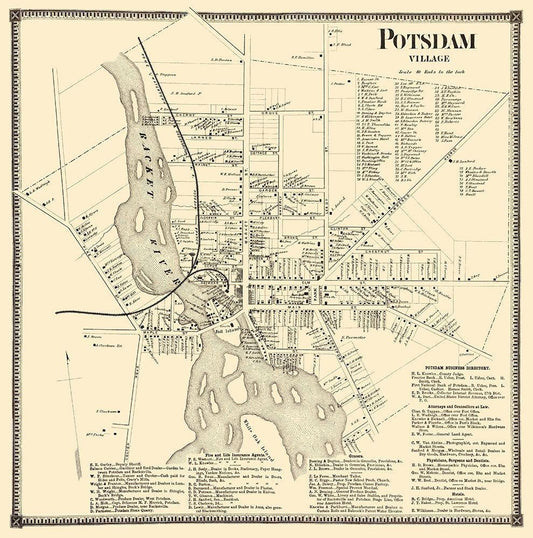 Potsdam Village New York Landowner - Stone 1865 White Modern Wood Framed Art Print with Double Matting by Stone