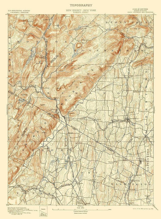 Ramapo New York New Jersey Quad - USGS 1893 White Modern Wood Framed Art Print with Double Matting by USGS