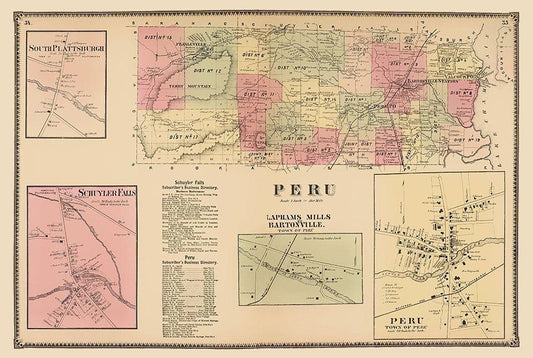 Plattsburgh, Schuyler Falls New York Landowner White Modern Wood Framed Art Print with Double Matting by Beers