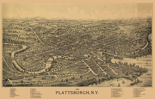 Plattsburgh New York - Burleigh 1899 White Modern Wood Framed Art Print with Double Matting by Burleigh