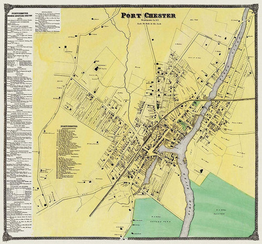 Port Chester New York Landowner - Beers 1868 White Modern Wood Framed Art Print with Double Matting by Beers