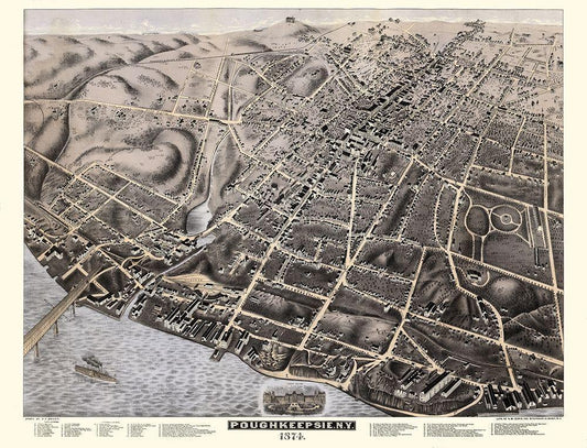 Poughkeepsie New York - Bailey 1874 White Modern Wood Framed Art Print with Double Matting by Bailey