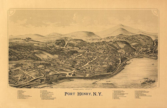 Port Henry New York - Burleigh 1889 White Modern Wood Framed Art Print with Double Matting by Burleigh